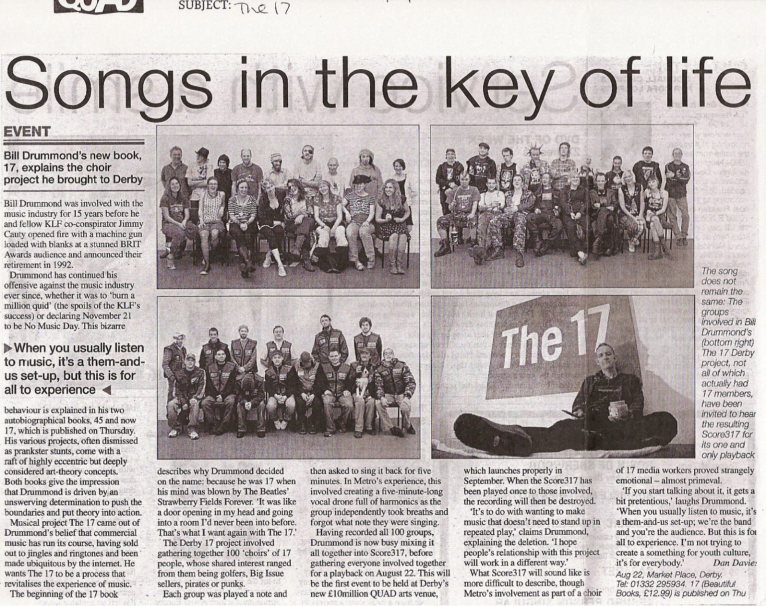 The17: Slice Through Derby / Bill Drummond on METRO Newspaper and Derby Evening Telegraph