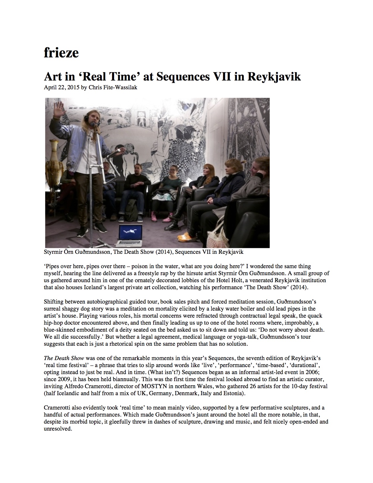 Press coverage for Sequences VII real-time art festival, Reykjavik, Iceland » frieze-1