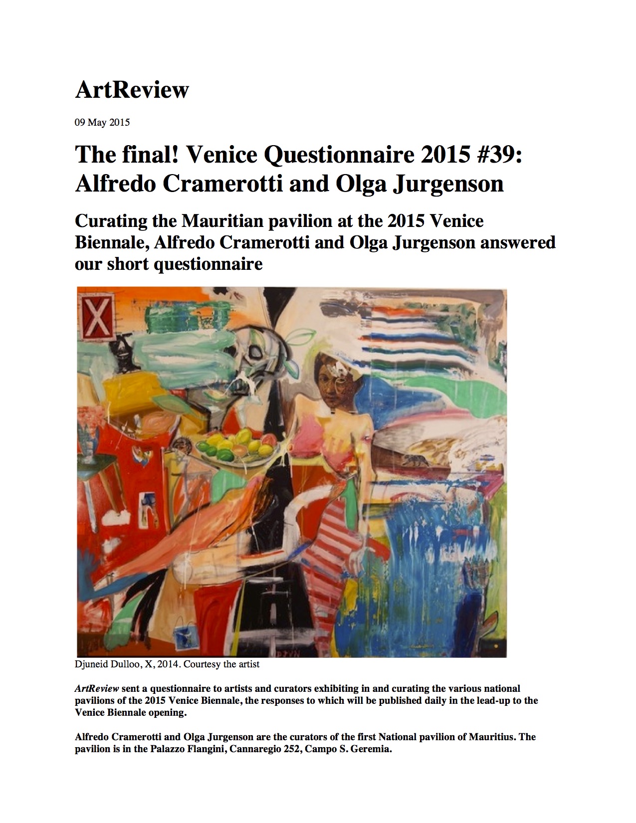 Press coverage for the Pavilion of Mauritius at the 56th International Art Exhibition – la Biennale di Venezia, Italy » ArtReview-1