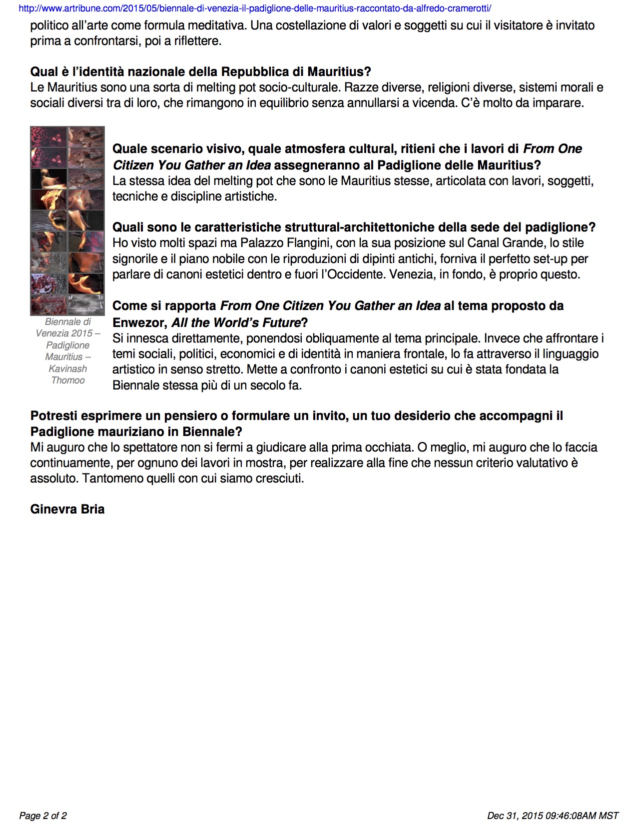 Press coverage for the Pavilion of Mauritius at the 56th International Art Exhibition – la Biennale di Venezia, Italy » Biennale_di_Venezia_Il_padiglione_delle_Mauritius_ACramerotti-2