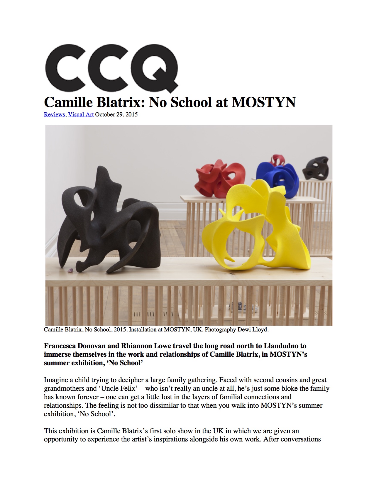 Press coverage for MOSTYN’s exhibitions: Camille Blatrix + Women’s Art Society II + Thomas Goddard » Camille Blatrix_No School review-1