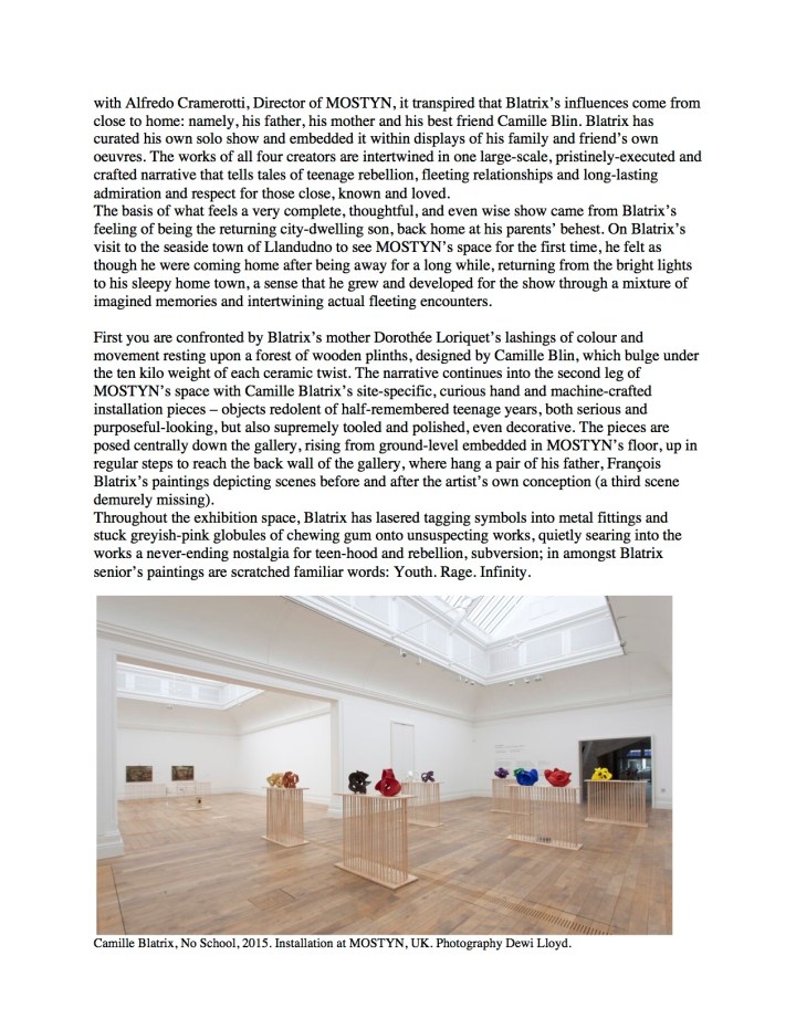 Press coverage for MOSTYN’s exhibitions: Camille Blatrix + Women’s Art Society II + Thomas Goddard » Camille Blatrix_No School review-2