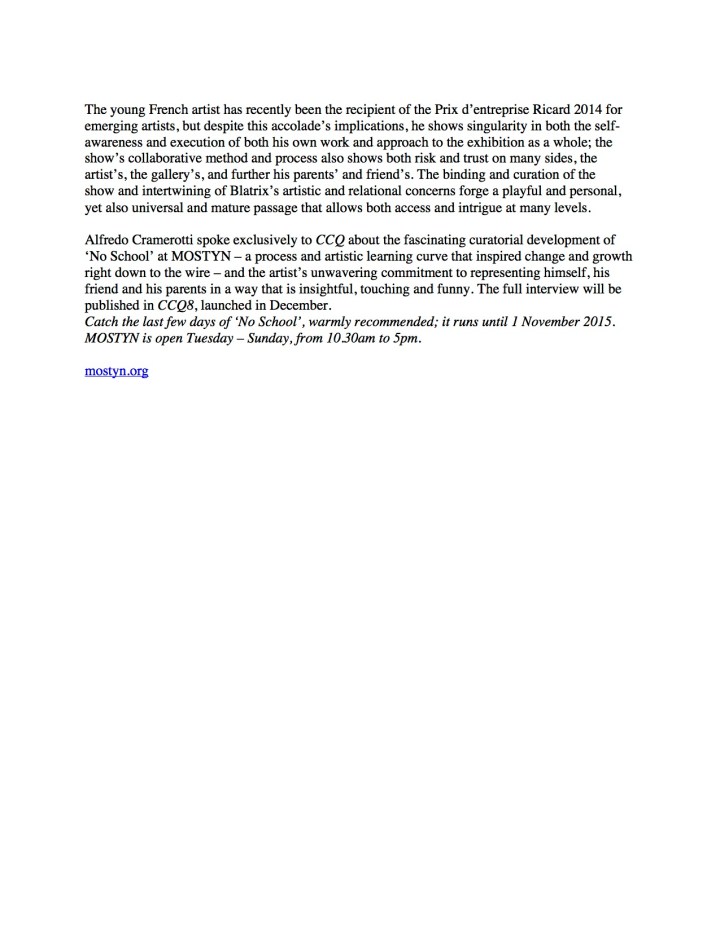 Press coverage for MOSTYN’s exhibitions: Camille Blatrix + Women’s Art Society II + Thomas Goddard » Camille Blatrix_No School review-3
