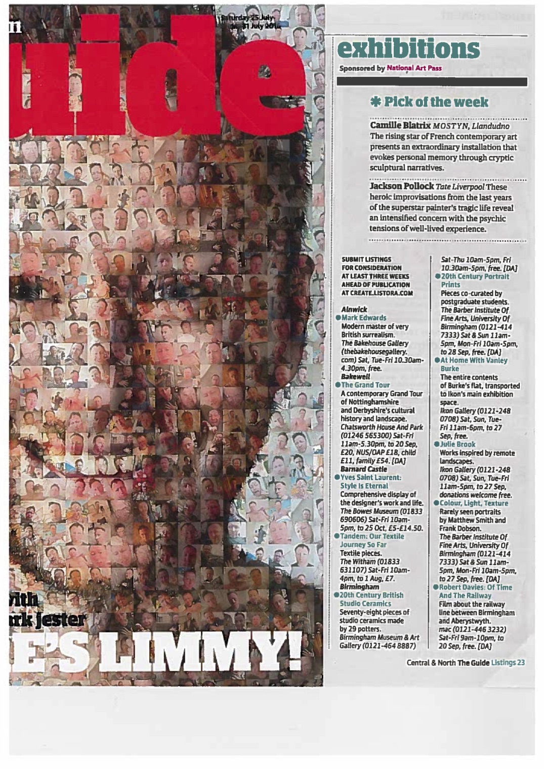 Press coverage for MOSTYN’s exhibitions: Camille Blatrix + Women’s Art Society II + Thomas Goddard » Guardian Guide 25July2015