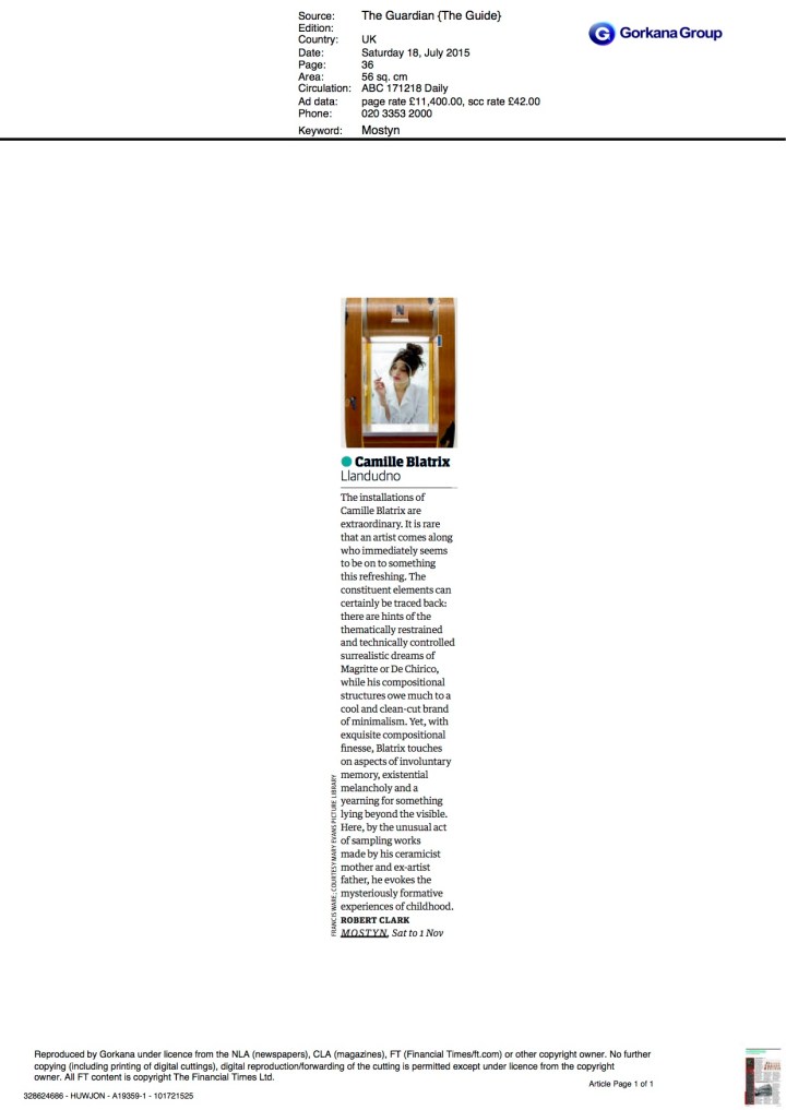 Press coverage for MOSTYN’s exhibitions: Camille Blatrix + Women’s Art Society II + Thomas Goddard » GuardianGuide_180715_Mostyn