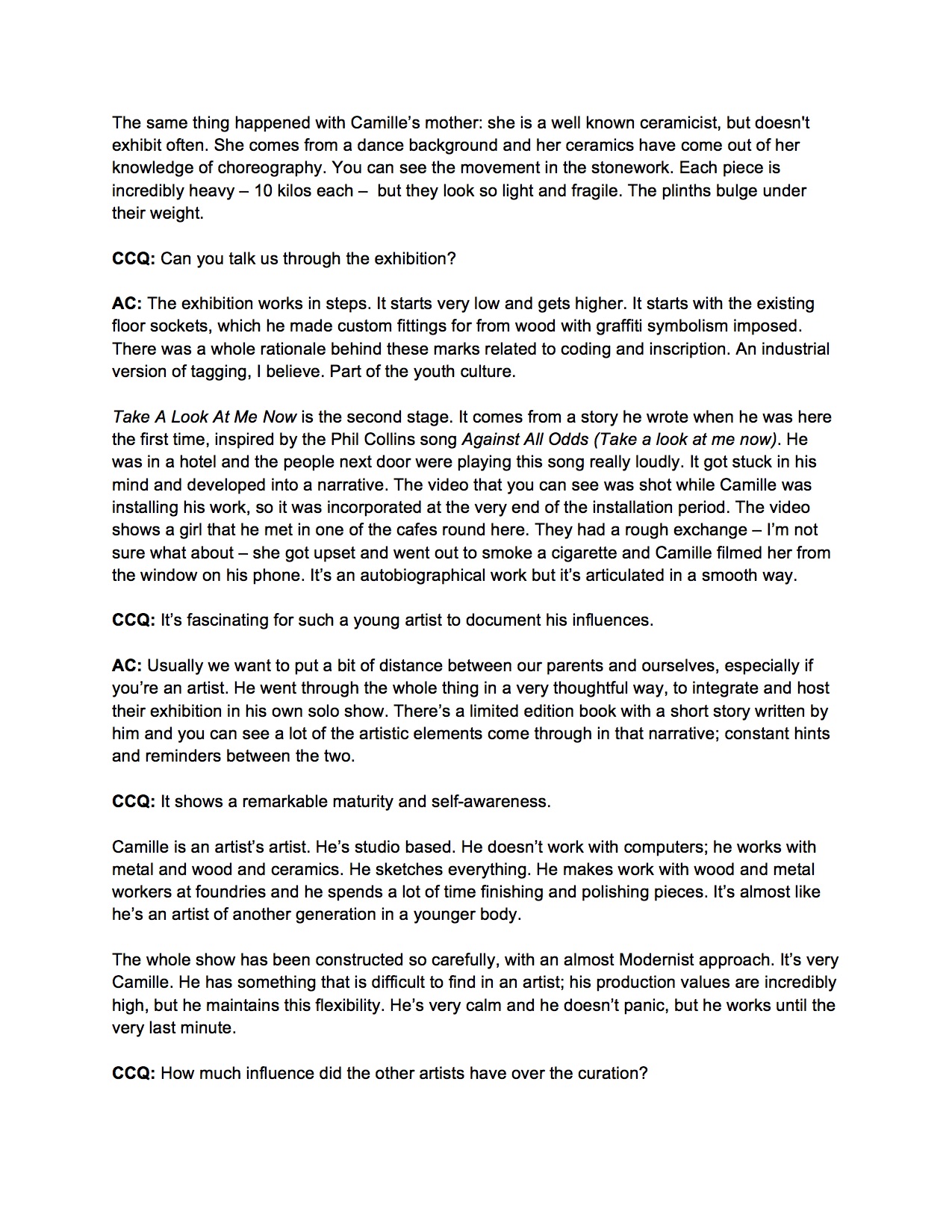 Press coverage for MOSTYN’s exhibitions: Camille Blatrix + Women’s Art Society II + Thomas Goddard » No School_Camille Blatrix_CCQ interview-3