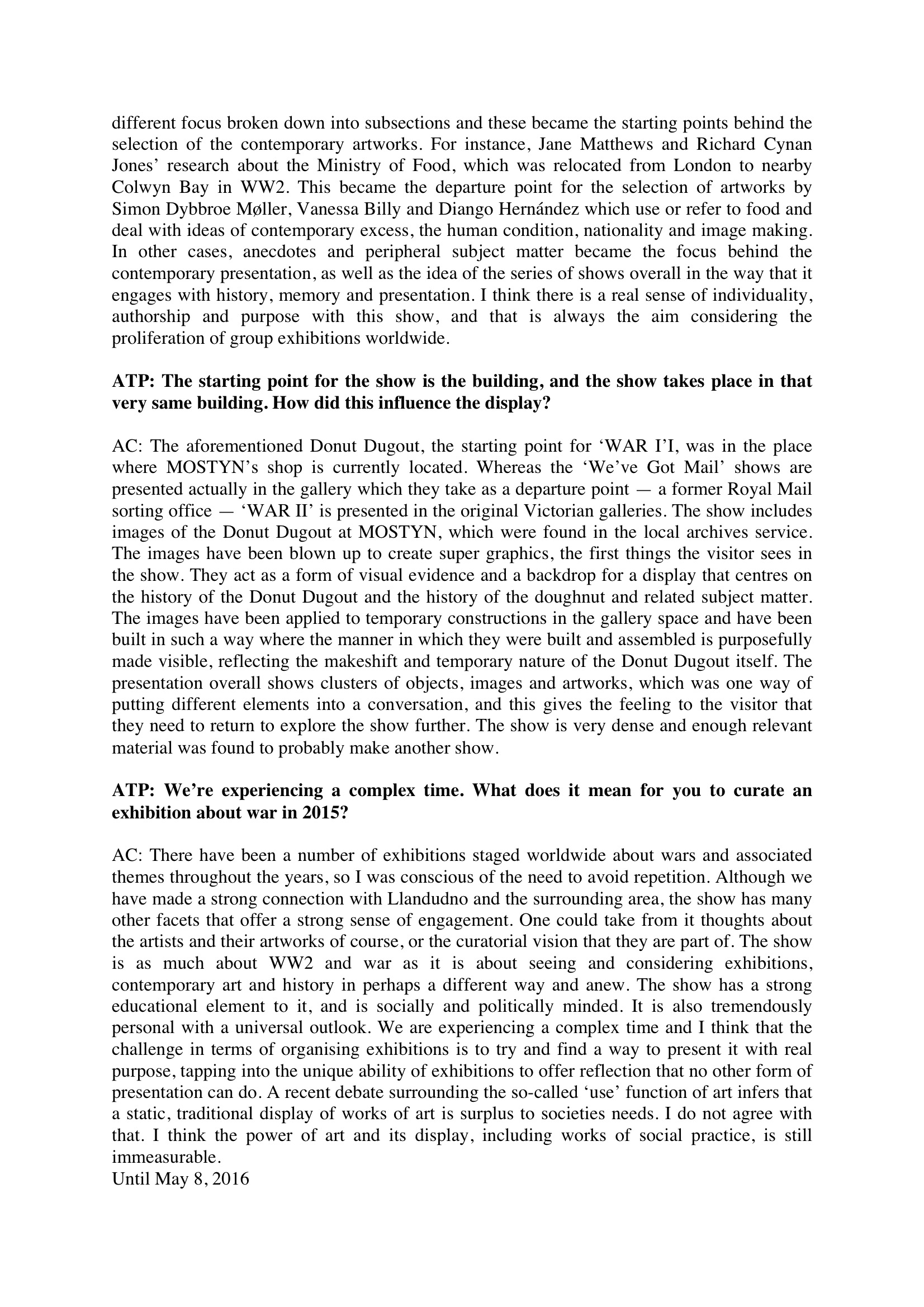 Press coverage for MOSTYN exhibitions: Diango Hernandez, Iwan Lewis and WAR II » ATP DIARY 3
