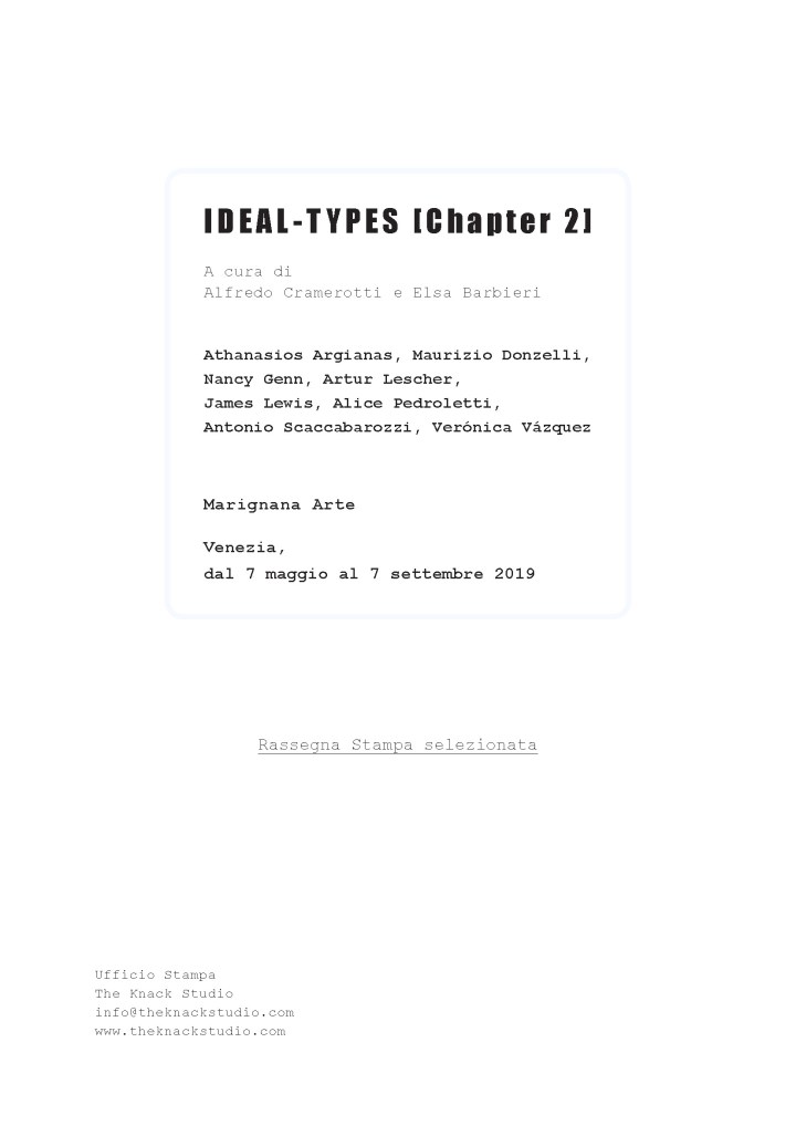 Press Coverage: IDEAL TYPES [Chapter 2] at Marignana Arte » Rassegna Stampa selezionata_IDEAL-TYPES [Chapter 2]_Marignana Arte_Venezia, 2019_The Knack Studio_Page_01