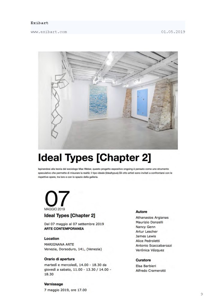Press Coverage: IDEAL TYPES [Chapter 2] at Marignana Arte » Rassegna Stampa selezionata_IDEAL-TYPES [Chapter 2]_Marignana Arte_Venezia, 2019_The Knack Studio_Page_09