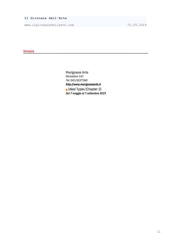 Press Coverage: IDEAL TYPES [Chapter 2] at Marignana Arte » Rassegna Stampa selezionata_IDEAL-TYPES [Chapter 2]_Marignana Arte_Venezia, 2019_The Knack Studio_Page_11