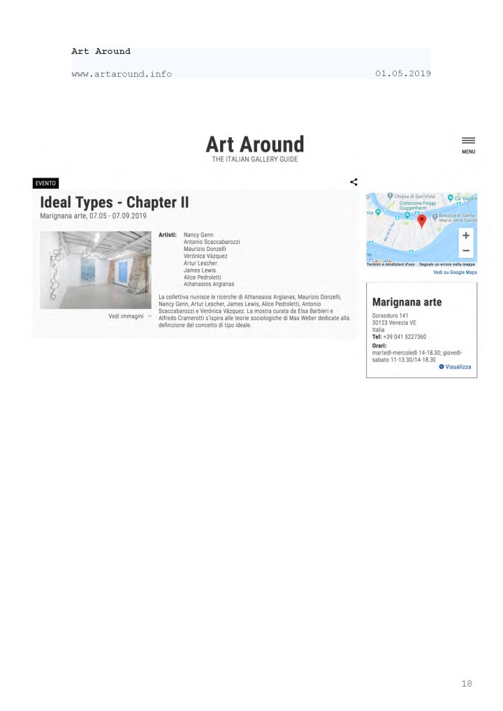 Press Coverage: IDEAL TYPES [Chapter 2] at Marignana Arte » Rassegna Stampa selezionata_IDEAL-TYPES [Chapter 2]_Marignana Arte_Venezia, 2019_The Knack Studio_Page_18