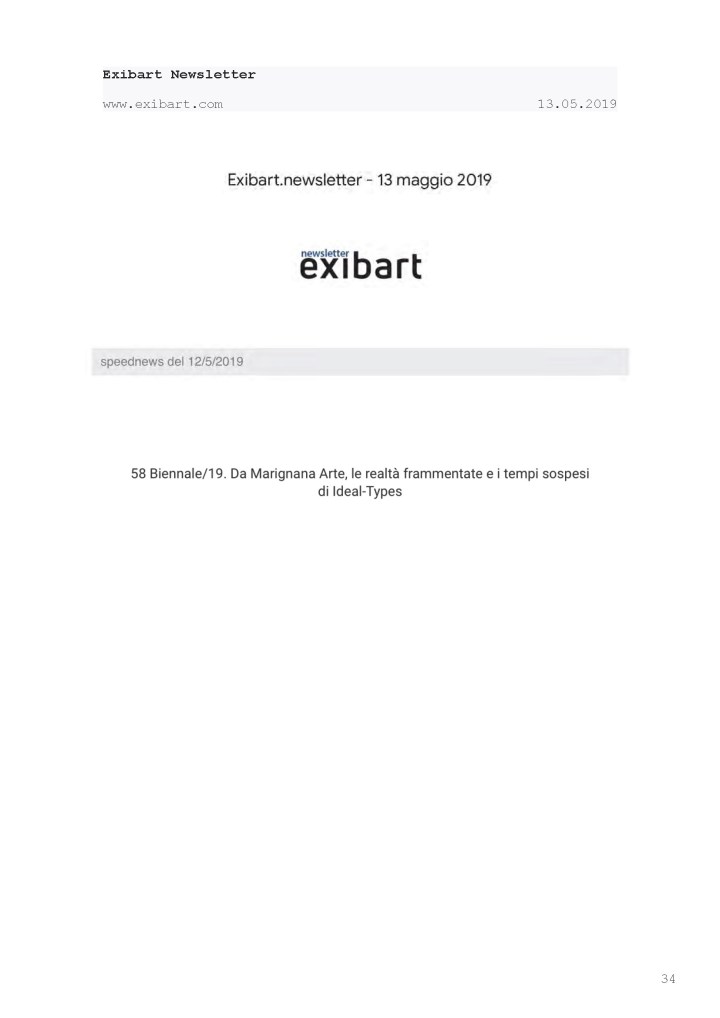 Press Coverage: IDEAL TYPES [Chapter 2] at Marignana Arte » Rassegna Stampa selezionata_IDEAL-TYPES [Chapter 2]_Marignana Arte_Venezia, 2019_The Knack Studio_Page_34