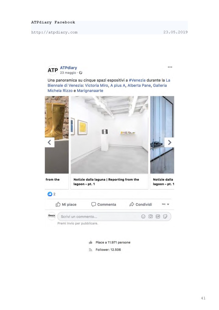 Press Coverage: IDEAL TYPES [Chapter 2] at Marignana Arte » Rassegna Stampa selezionata_IDEAL-TYPES [Chapter 2]_Marignana Arte_Venezia, 2019_The Knack Studio_Page_41