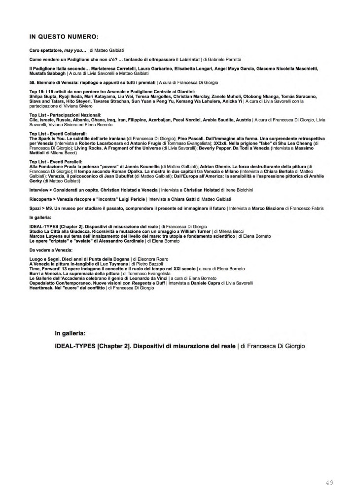 Press Coverage: IDEAL TYPES [Chapter 2] at Marignana Arte » Rassegna Stampa selezionata_IDEAL-TYPES [Chapter 2]_Marignana Arte_Venezia, 2019_The Knack Studio_Page_49