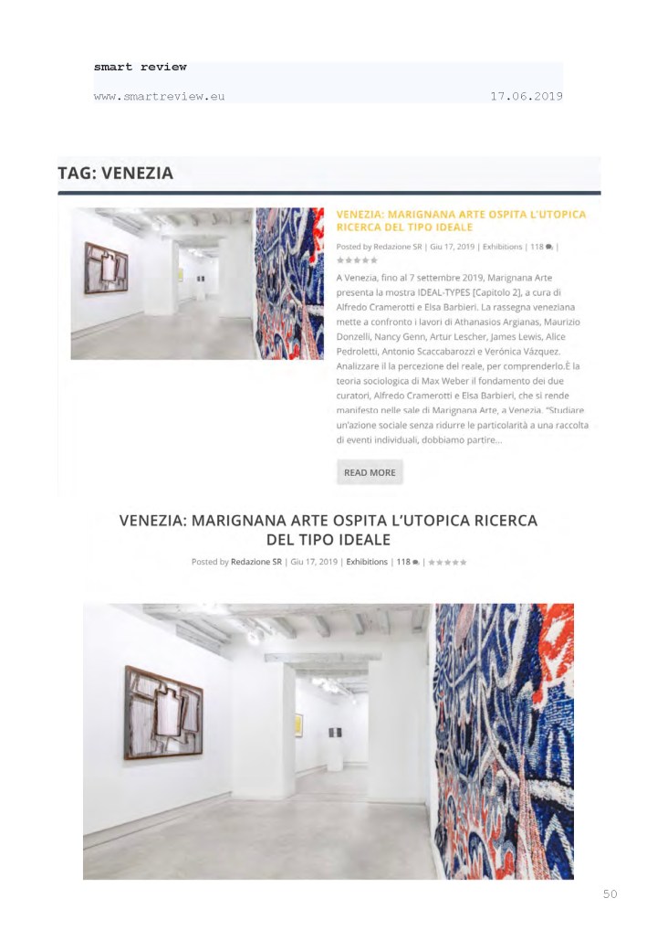 Press Coverage: IDEAL TYPES [Chapter 2] at Marignana Arte » Rassegna Stampa selezionata_IDEAL-TYPES [Chapter 2]_Marignana Arte_Venezia, 2019_The Knack Studio_Page_50