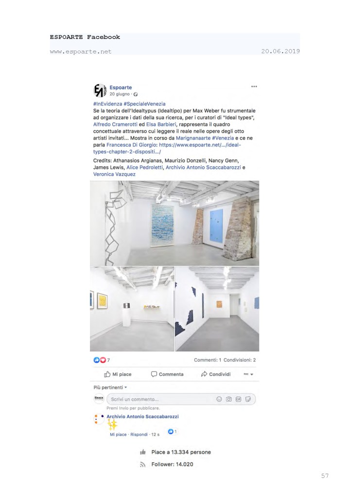 Press Coverage: IDEAL TYPES [Chapter 2] at Marignana Arte » Rassegna Stampa selezionata_IDEAL-TYPES [Chapter 2]_Marignana Arte_Venezia, 2019_The Knack Studio_Page_57