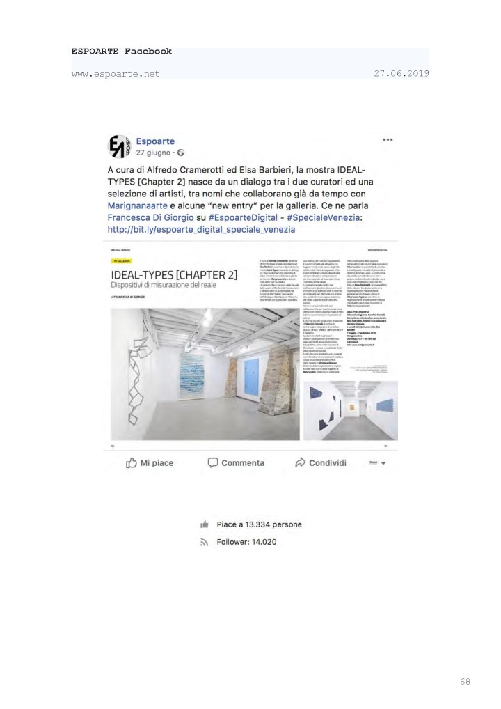 Press Coverage: IDEAL TYPES [Chapter 2] at Marignana Arte » Rassegna Stampa selezionata_IDEAL-TYPES [Chapter 2]_Marignana Arte_Venezia, 2019_The Knack Studio_Page_68