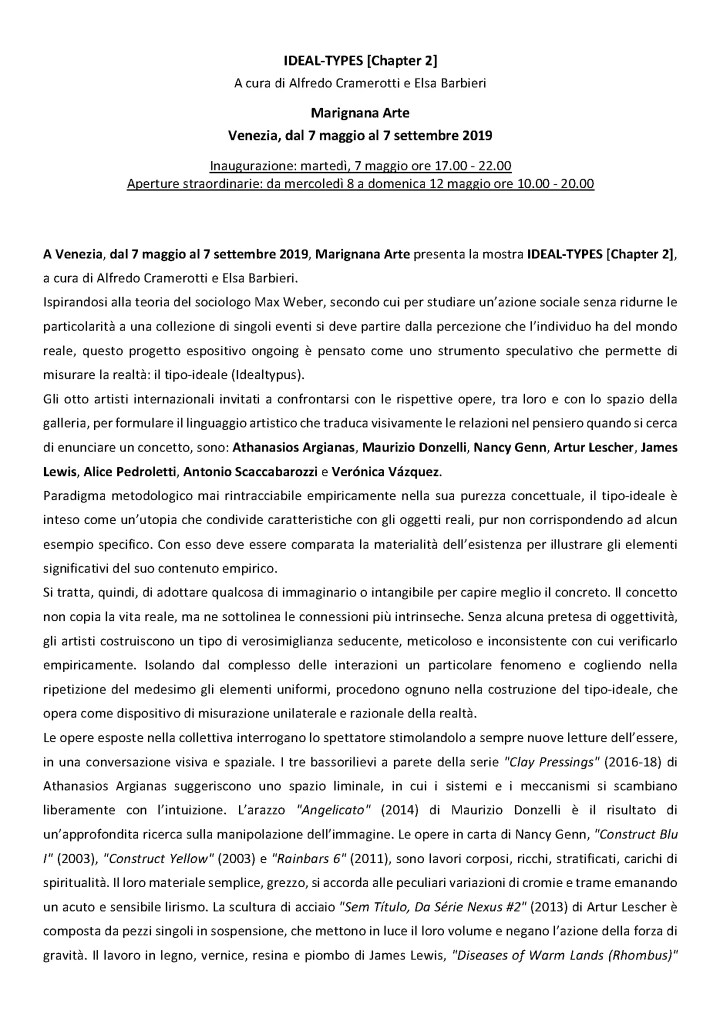 Press Coverage: IDEAL TYPES [Chapter 2] at Marignana Arte » Rassegna Stampa selezionata_IDEAL-TYPES [Chapter 2]_Marignana Arte_Venezia, 2019_The Knack Studio_Page_84