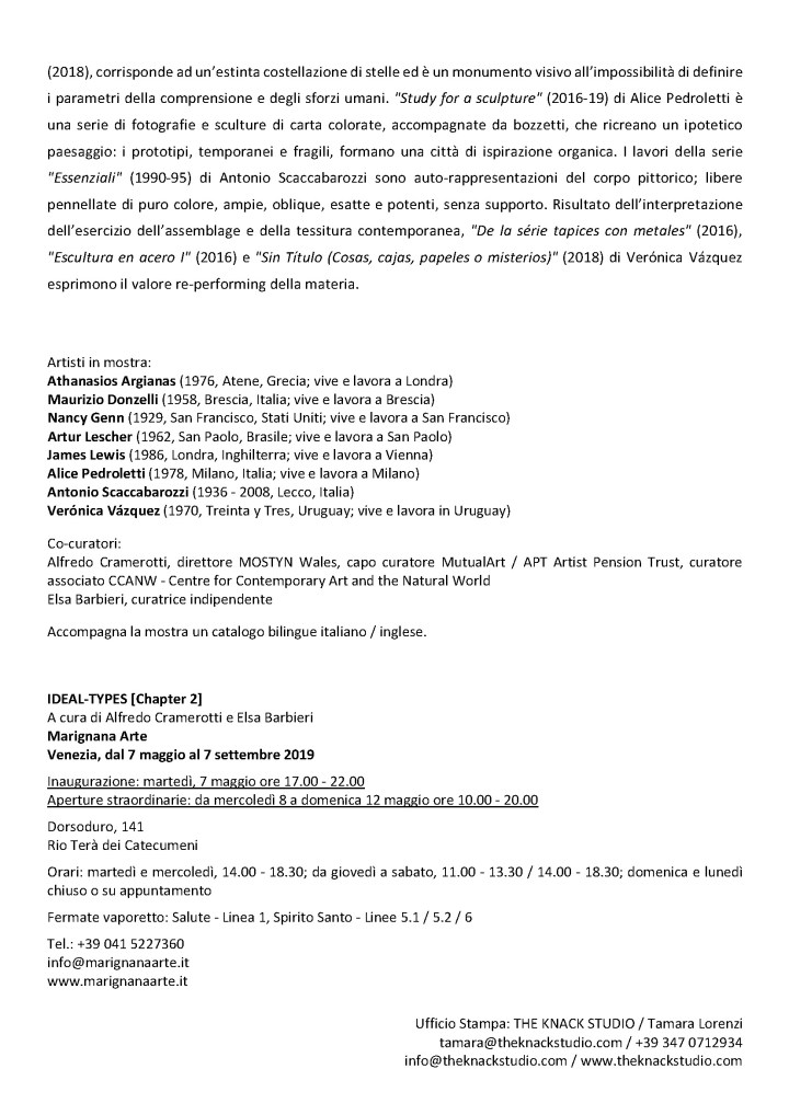 Press Coverage: IDEAL TYPES [Chapter 2] at Marignana Arte » Rassegna Stampa selezionata_IDEAL-TYPES [Chapter 2]_Marignana Arte_Venezia, 2019_The Knack Studio_Page_85