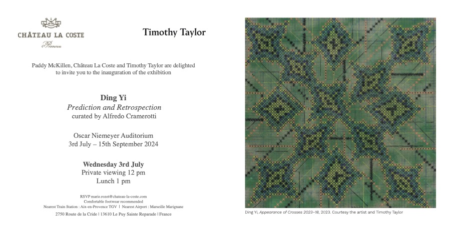 “This exhibition unveils Ding Yi’s mastery in navigating the intersections of tradition and innovation; my aim as curator is to invite every viewer to absorb and immerse oneself into the convergence of form and concept. In Ding Yi’s solo presentation at Chateau Lacoste, expect nothing short of a transcendent journey through the labyrinth of visual language, where every brushstroke resonates with the echoes of cultural memory and contemporary resonance.”