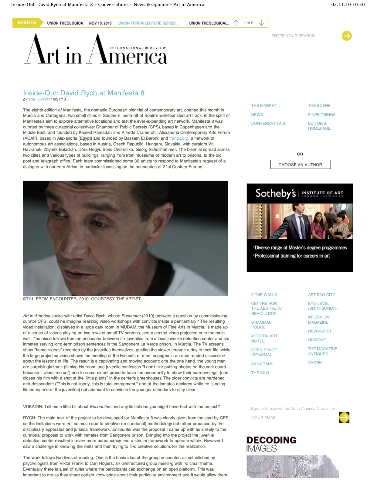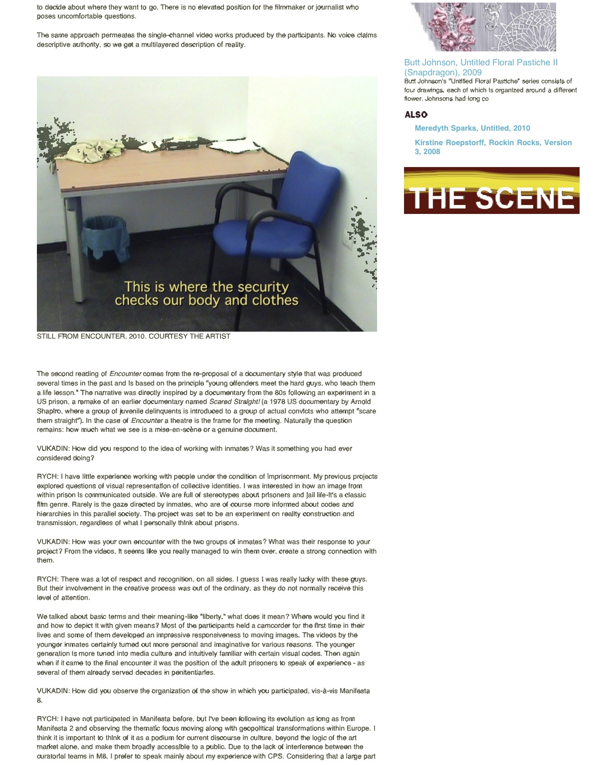 David Rych talks about his video installation “Encounter 2010” at the MUBAM Murcia at Manifesta 8.