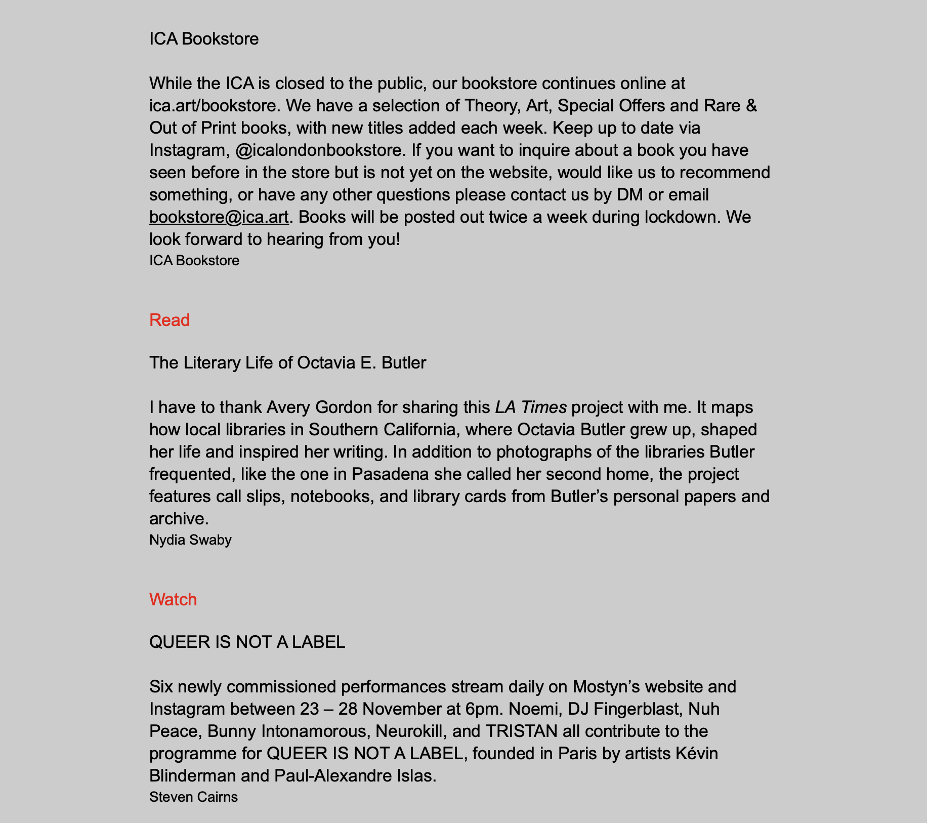 Press coverage highlights for MOSTYN’s extended exhibition season November 2020 – June 2021: Hannah Quinlan and Rosie Hastings, Nick Hornby, Richard Wathen + online commissions by Local 37/LUMIN, Queer Is Not a Label, and My Online Bedroom digital exhibition