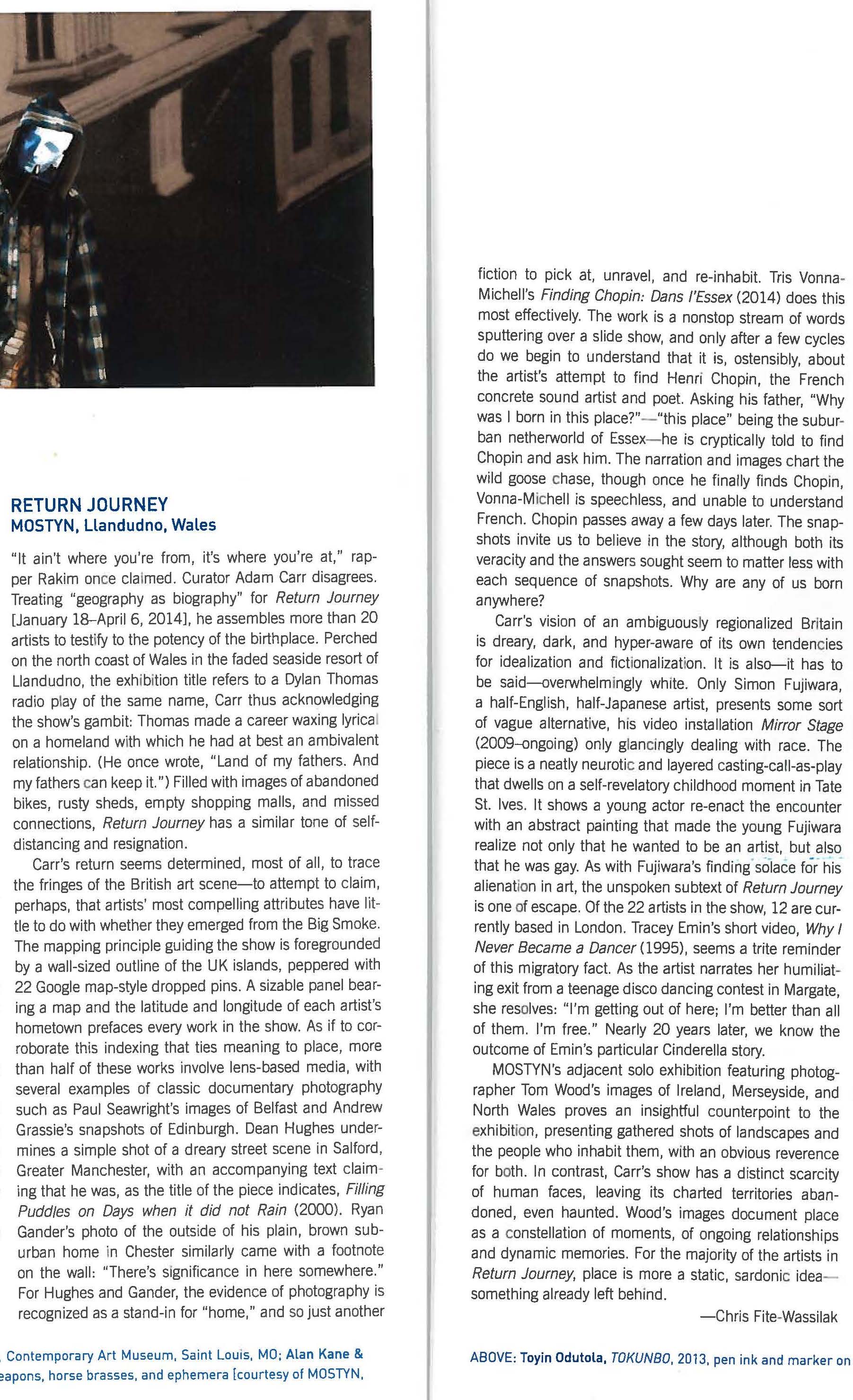 MOSTYN – some press clippings Dec 13-Apr 14: NINA BEIER, TOM WOOD, MERIÇ ALGÜN RINGBORG and RETURN JOURNEY group show