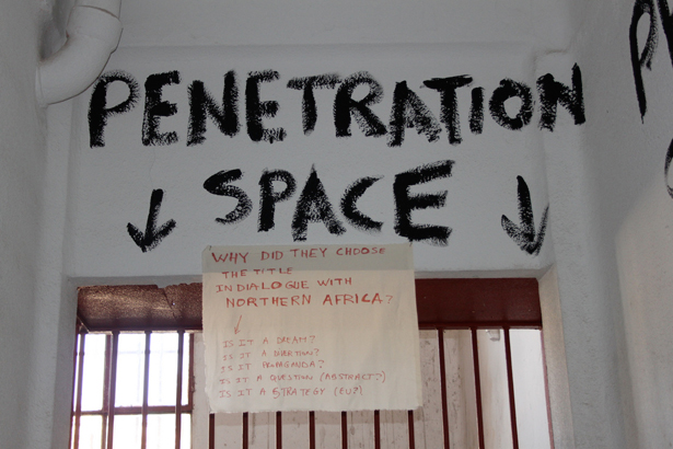To be part of the Penetration, artists from Northern Africa can just come and install their work at San Anton Prison in Cataregna on any day that they have a pertinent art work. Every time they install a Penetration work they are kindly asked to send photographs of their installation to Thierry Geoffroy / Colonel so the blog can be updated and a catalogue created: 1@colonel.dk