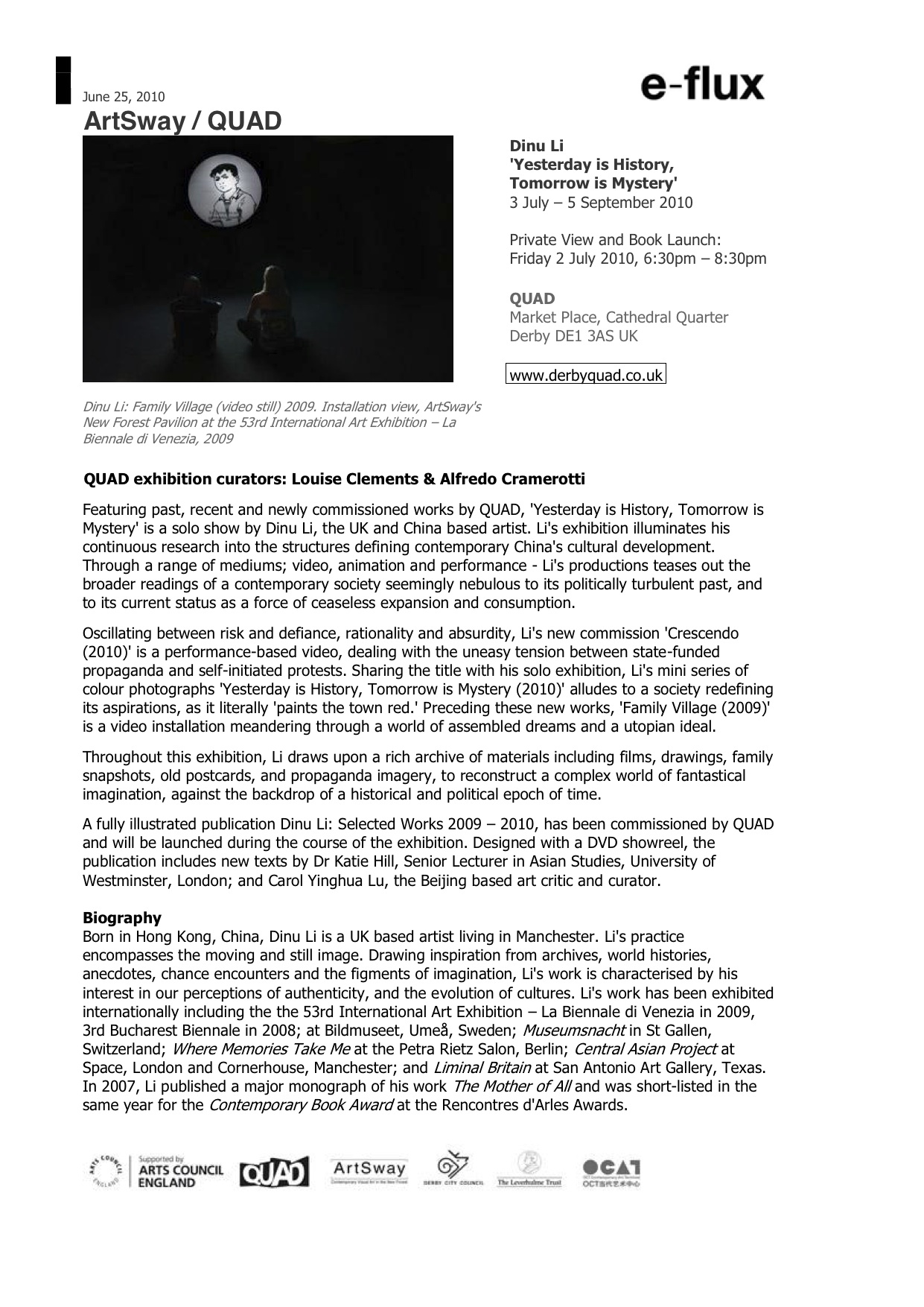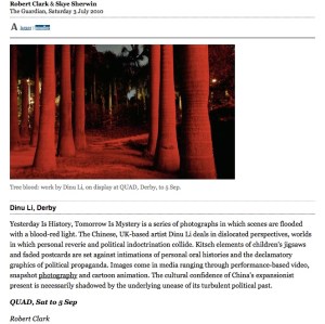 Dinu Li: Yesterday is History, Tomorrow is Mystery on The Guardian Guide, Derby Evening Telegraph and This is Derbyshire Magazine