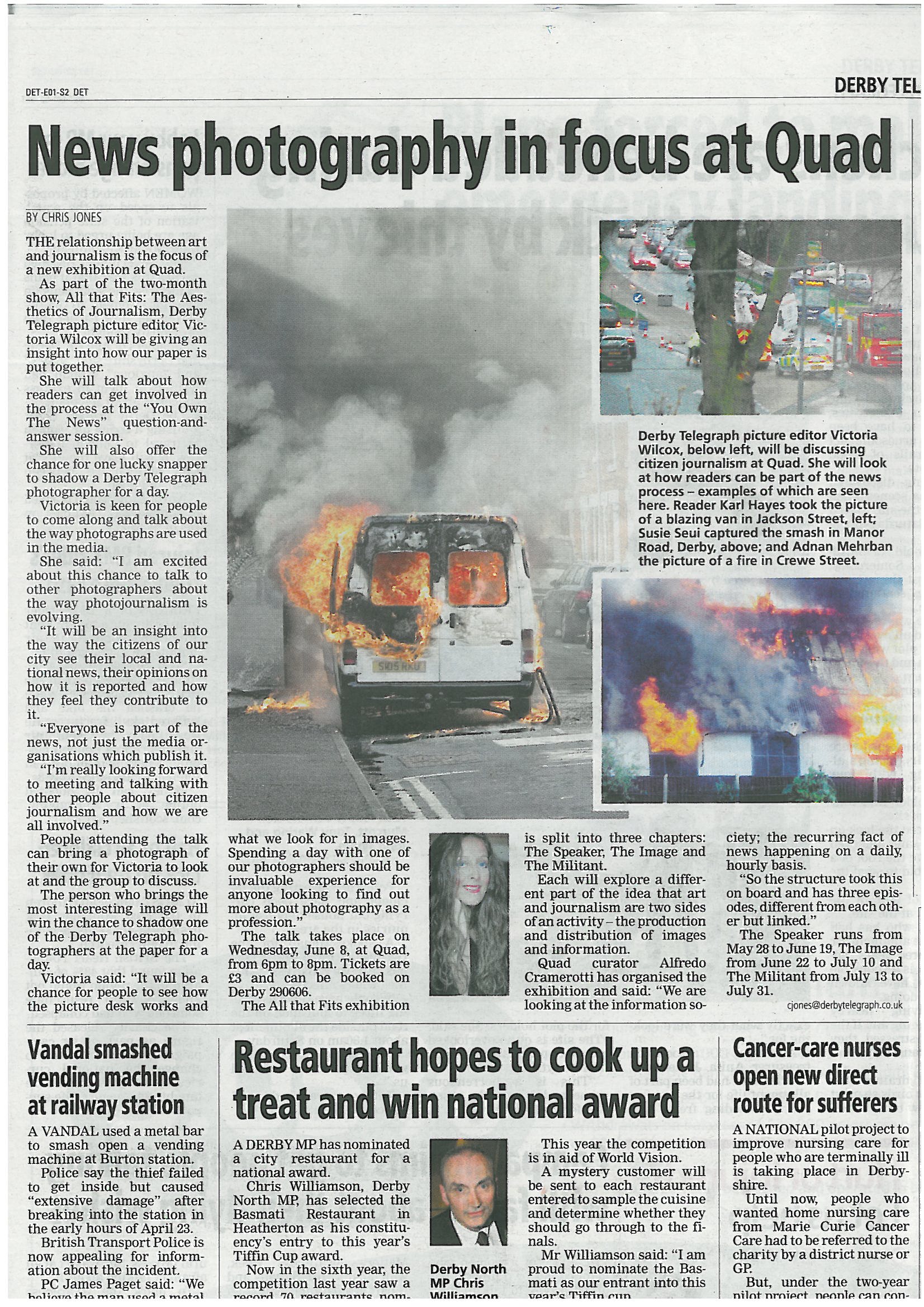 The Guardian Newspaper (3 July), Derby Evening Telegraph (5 July) and This is Derbyshire Magazine (10 August)