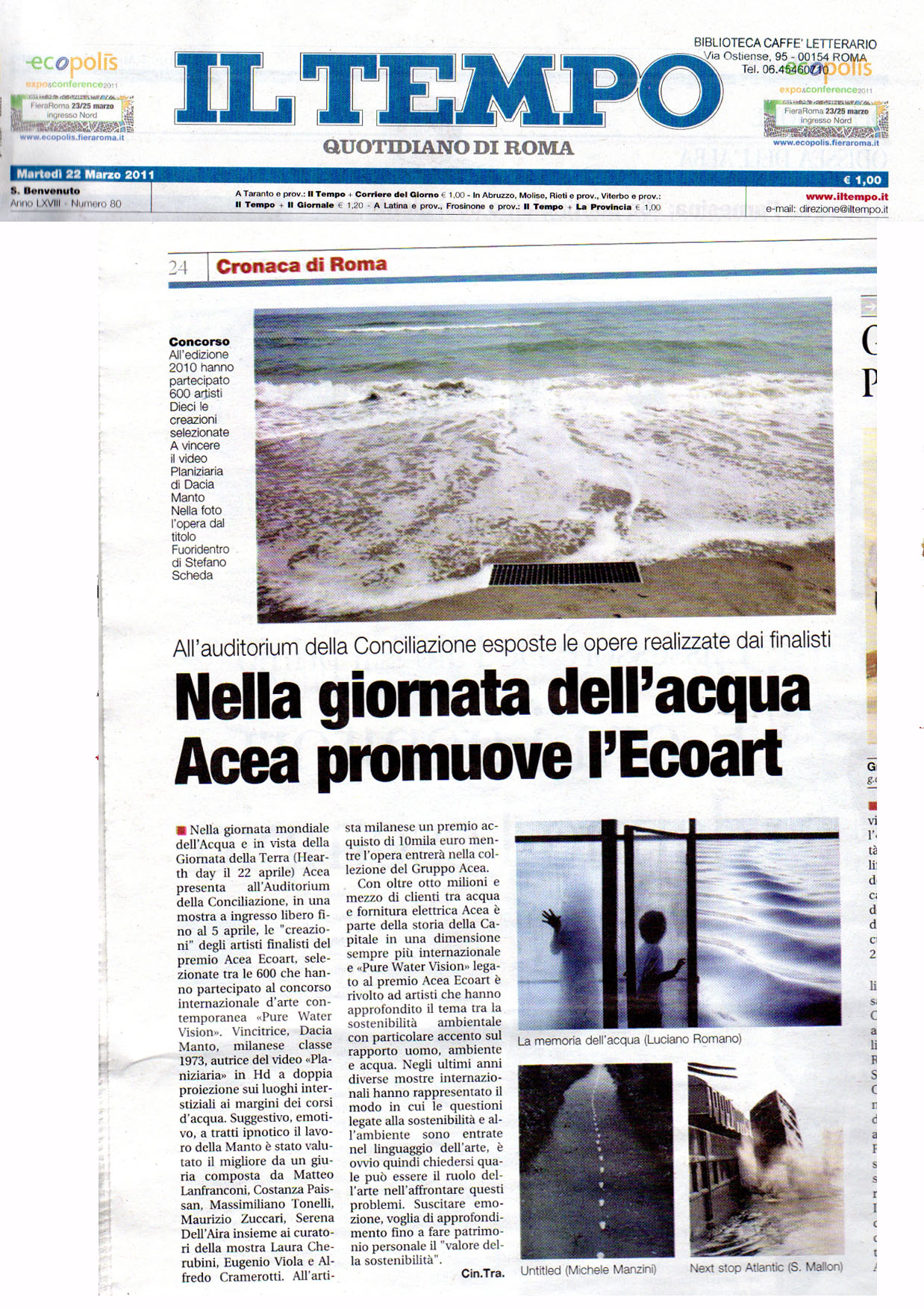 Exibit of the Acea EcoArt Prize curated by: Laura Cherubini, Eugenio Viola, Alfredo Cramerotti